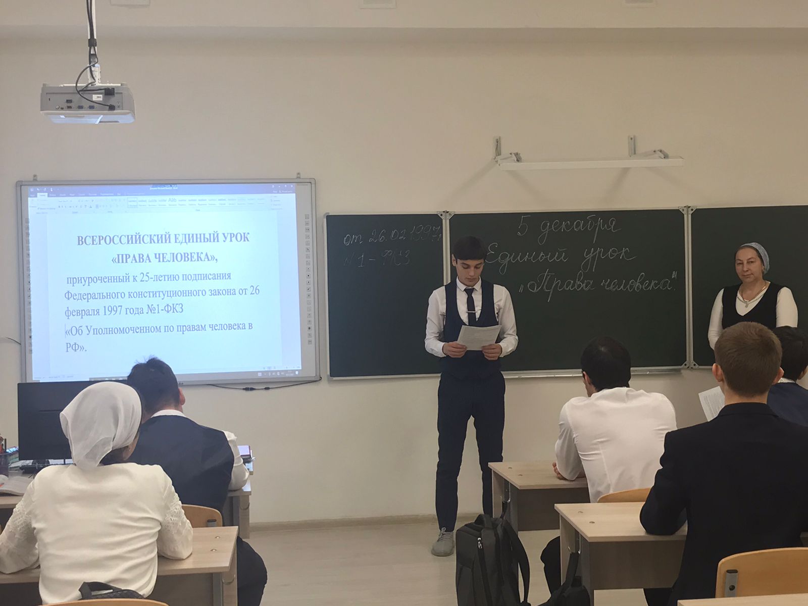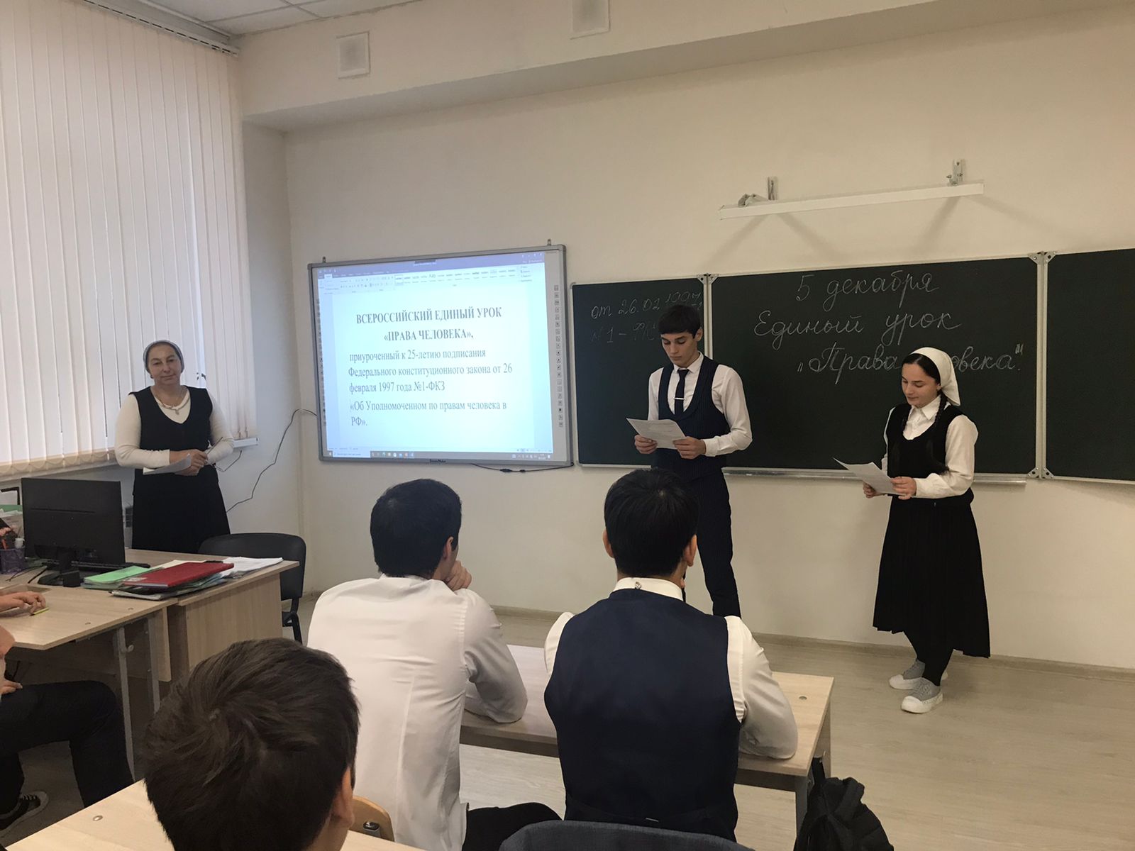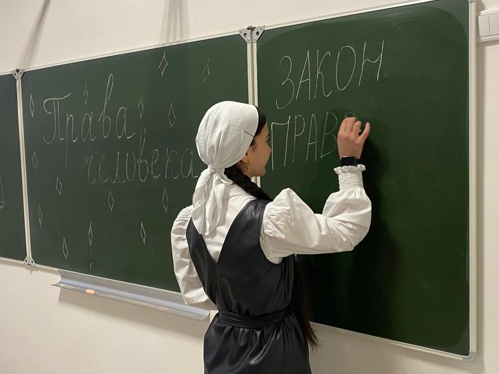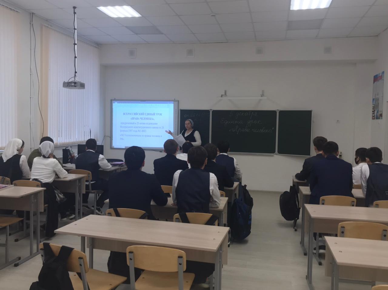 В 11 классе Зубайраевой З.В. был проведён урок «Единый урок. Права человека» в сопровождении с компьютерной презентацией. Цель урока: сформировать представление учащихся о первых попытках введения конституционного правления в России и начале демократического конституционализма. В начале урока Зарема Владимировна рассказала о влиянии движения декабристов в распространении идеи конституционализма в России, привела сравнение первых проектов Конституции России. Вместе с учащимися обсуждалась проблема «Почему во времена Александра I Конституция не была принята?».