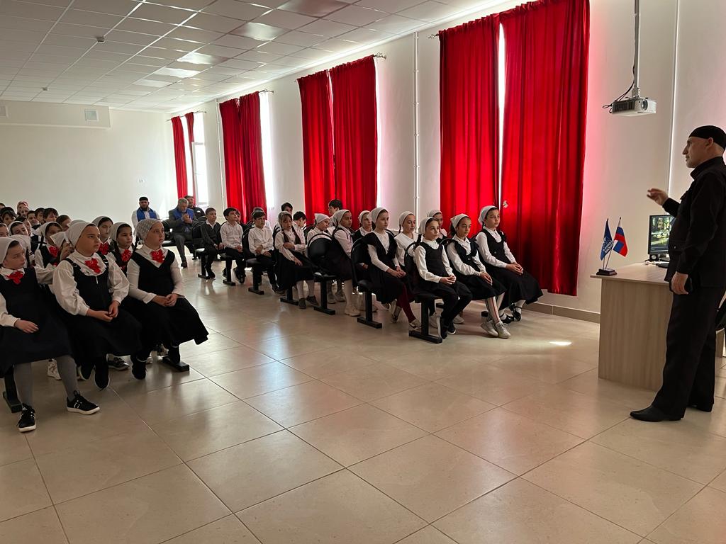 04.04.2023В рамках проекта «Киноуроки в школах России» в МБОУ «Ойсхарская СШ №4 имени Р.Х. Каимова» совместно с Исполнительным секретарем МО партии «Единая Россия» Усманом Эльмурзаевым, главным специалистом экономического отдела Администрации Гудермесского муниципального района Рамзаном Татаевым, депутатом городского совета Лечи Яхихаджиевым, главным специалистом УО Гудермесского района Вахой Хизриевым и представителями партии «Единая Россия» было организовано мероприятие с просмотром фильма Стеша» учащимися 3 – 4 классов.