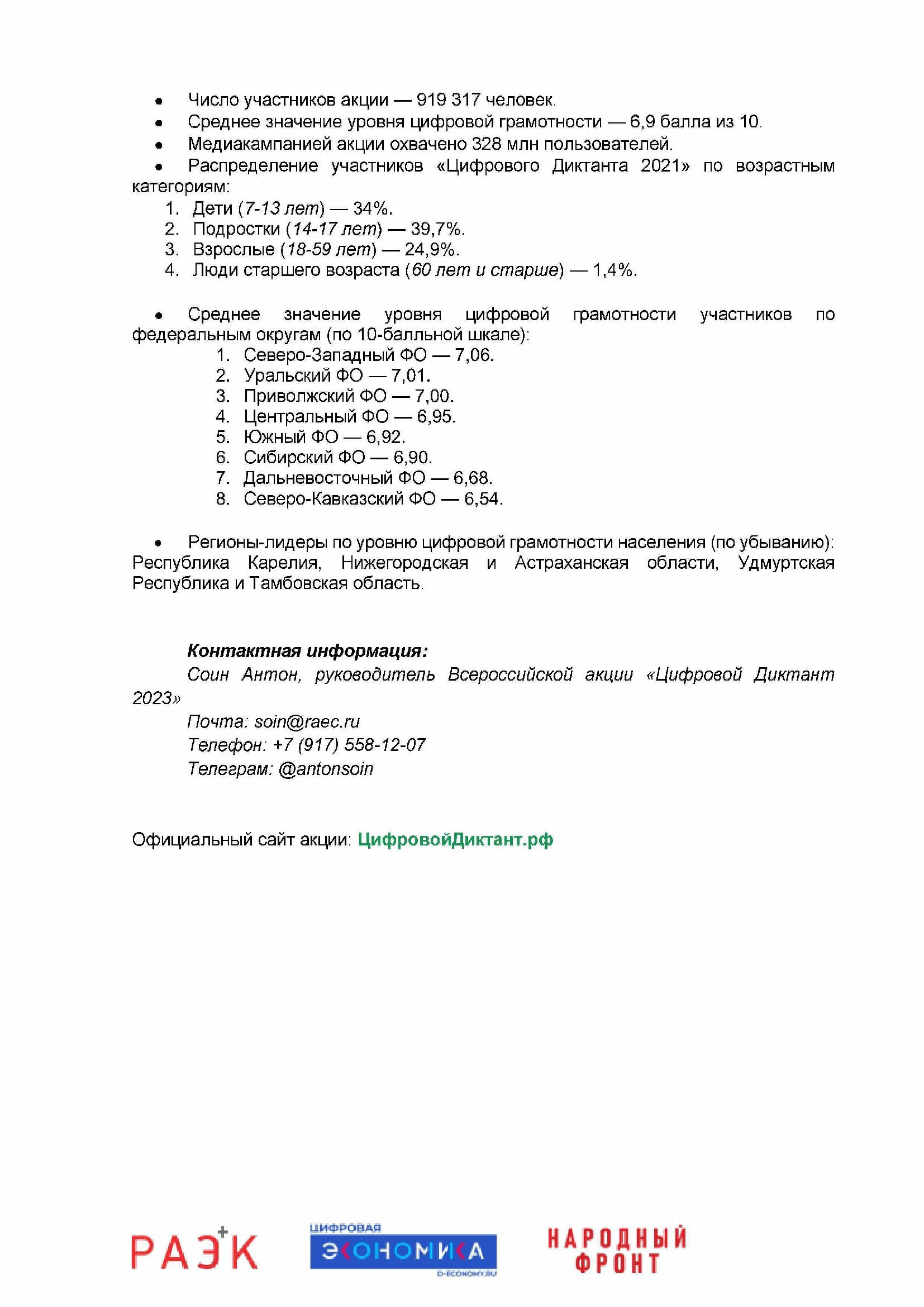 20.09.2023Цифровой Диктант — Всероссийская акция, признанная самой масштабной в России проверкой знаний в области цифровой грамотности.