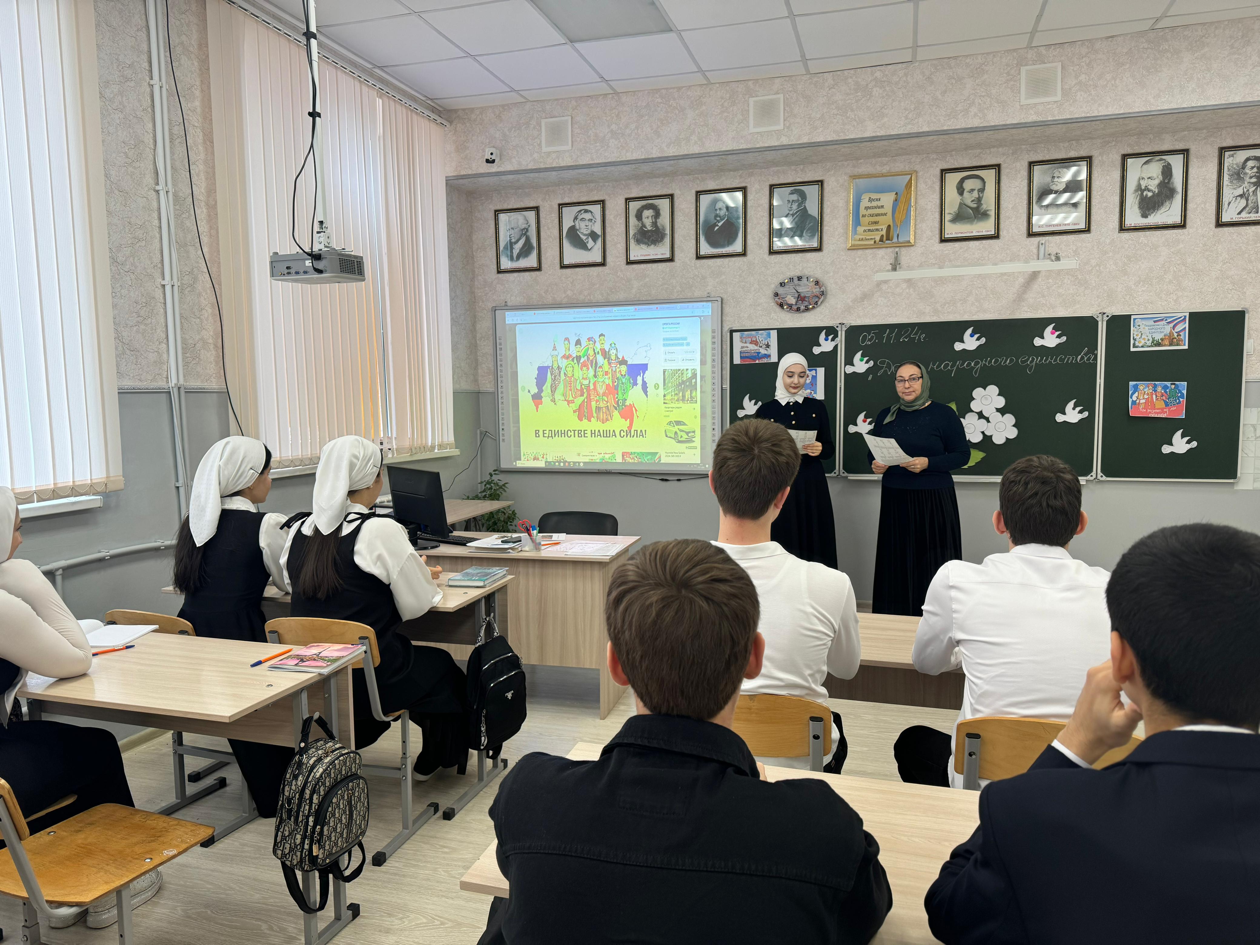 5 ноября 2024 года в школе прошли классные часы, посвященные значимой дате в истории нашей страны — Дню народного единства. Этот праздник символизирует сплоченность и единство многонационального народа России, его историю и культурное наследие.