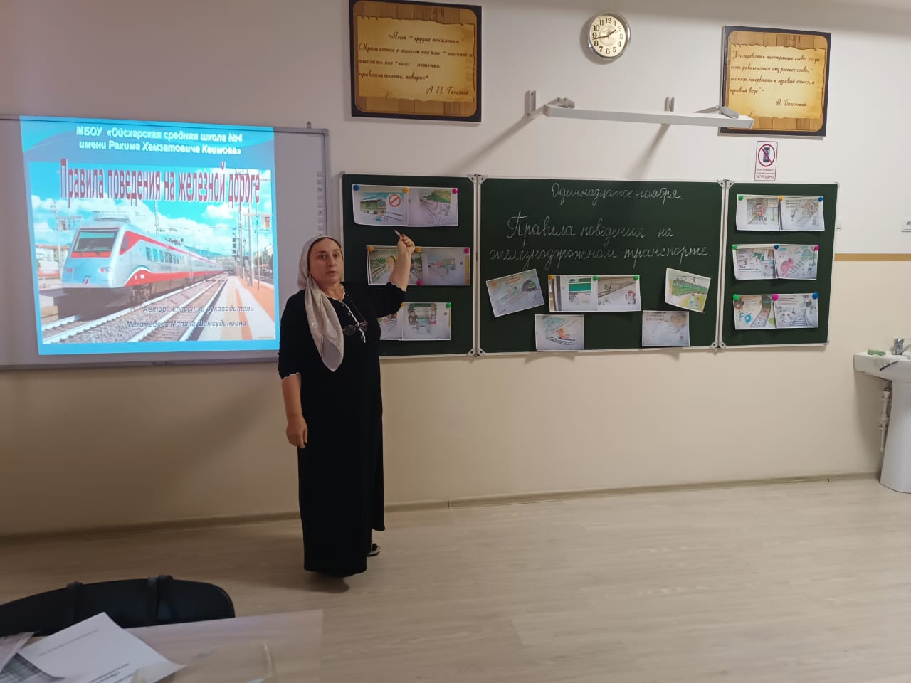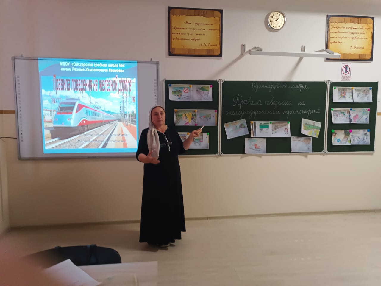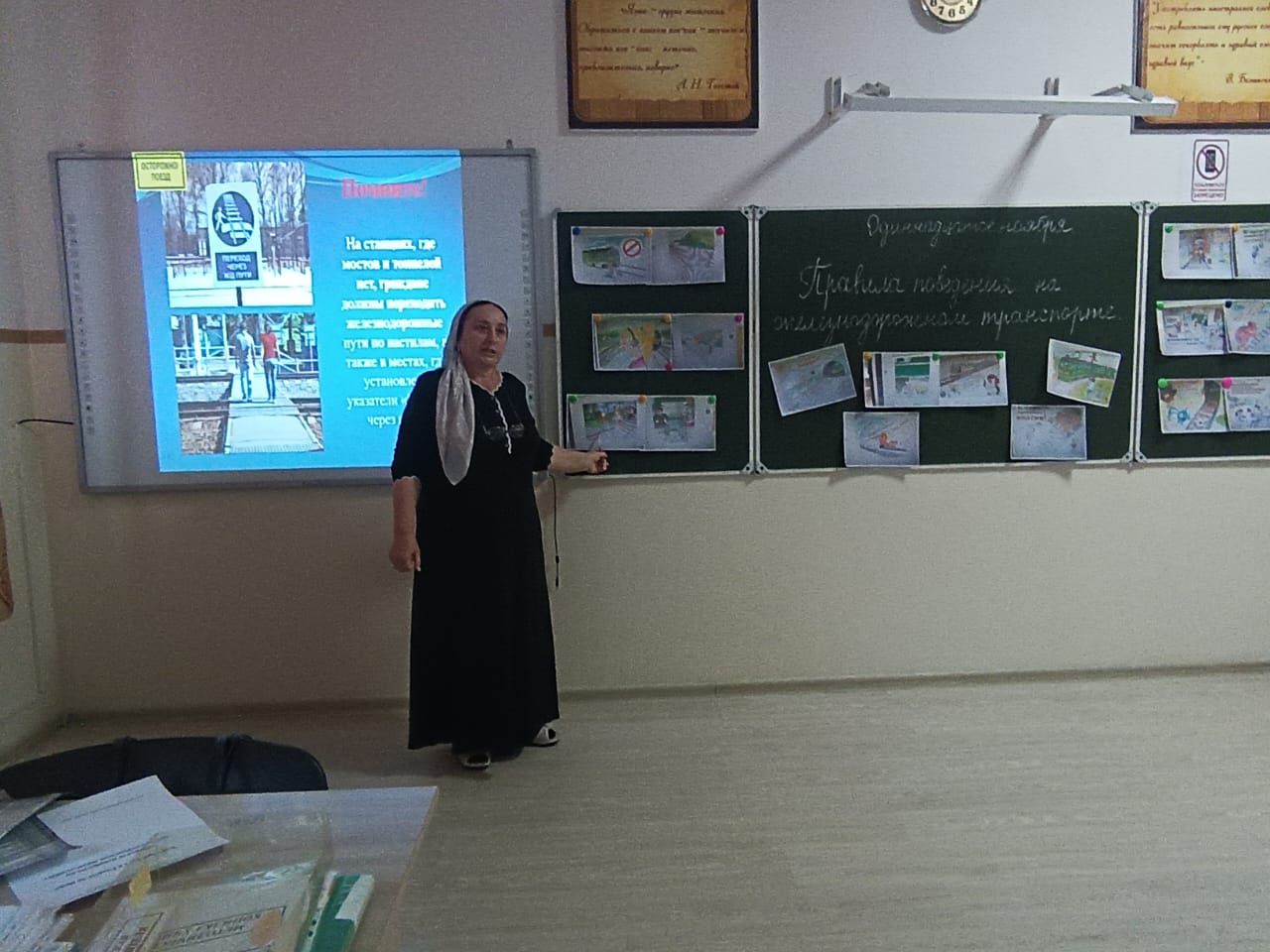 Малика Шамсудиновна провела презентацию, в которой рассказала о том, как правильно вести себя на станции и в поезде, как избежать опасных ситуаций и какую помощь можно оказать другим пассажирам. В рамках мероприятия состоялся конкурс на лучшее знание правил, где ребята активно участвовали, отвечая на заданные вопросы и решая тематические задачи.