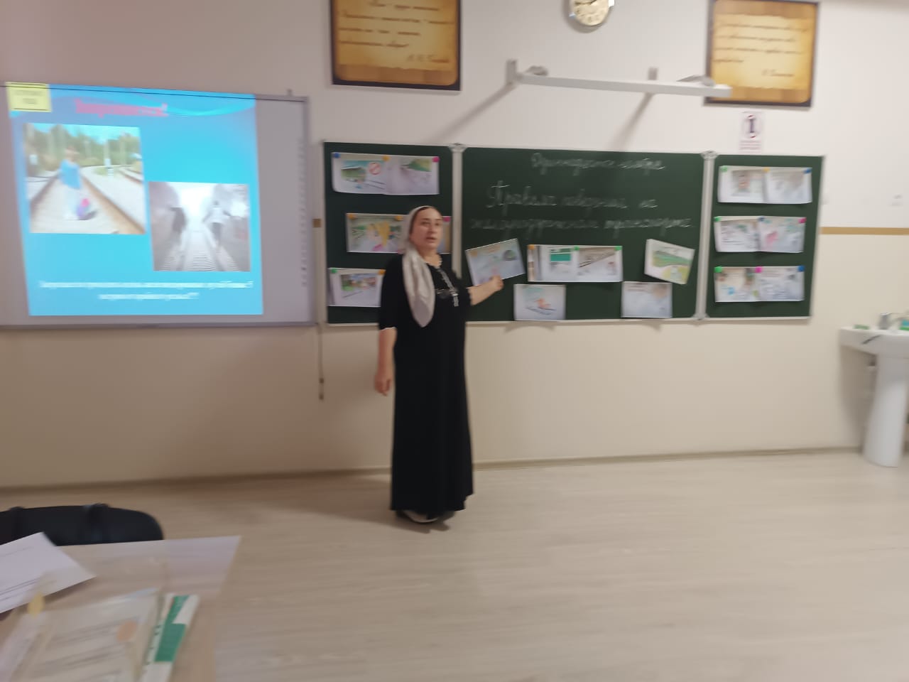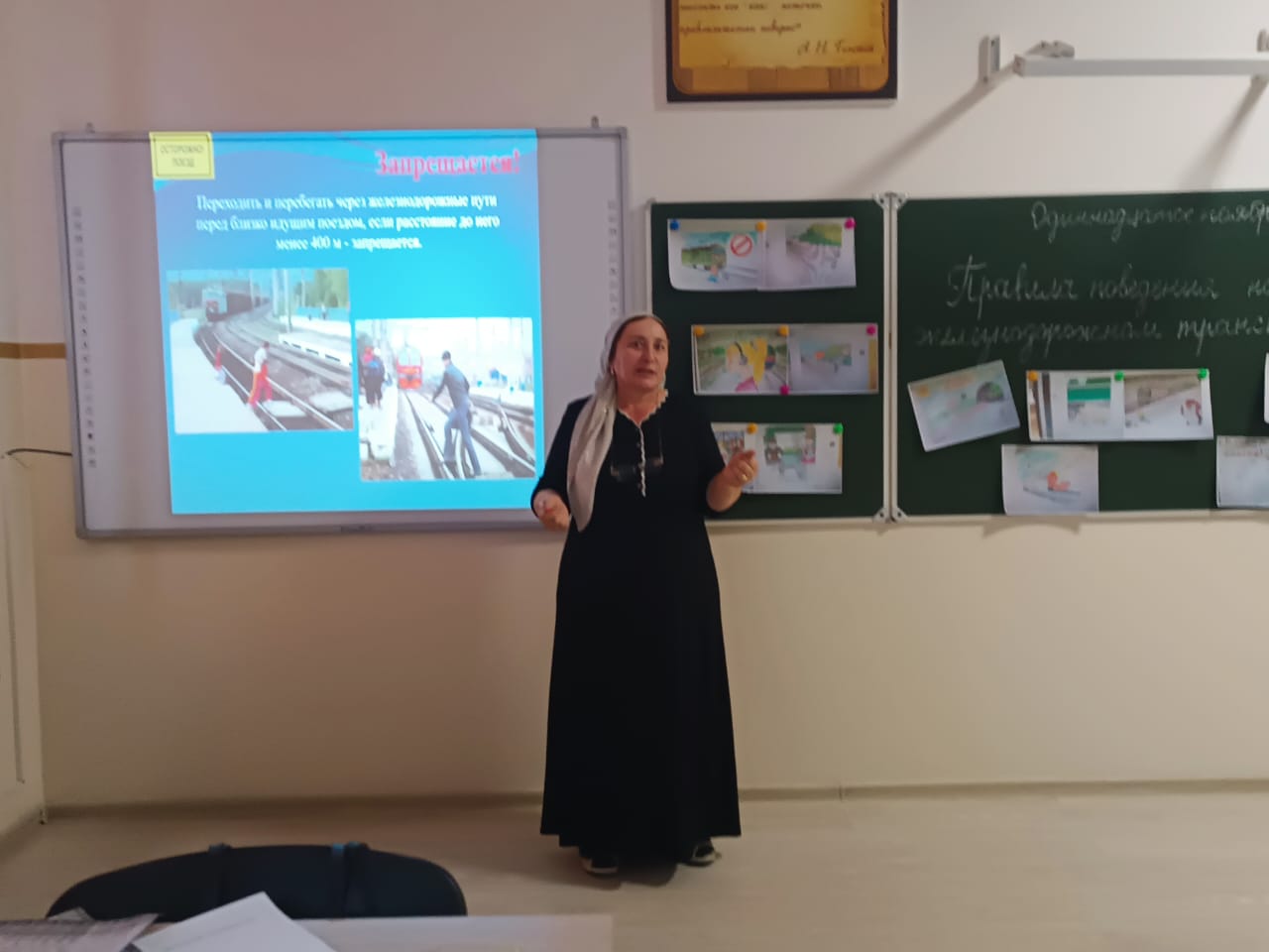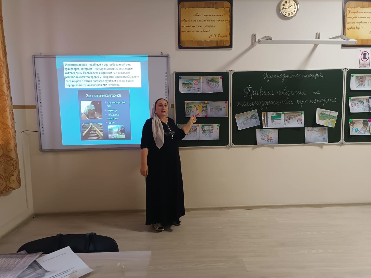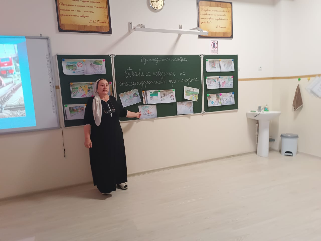 Малика Шамсудиновна провела презентацию, в которой рассказала о том, как правильно вести себя на станции и в поезде, как избежать опасных ситуаций и какую помощь можно оказать другим пассажирам. В рамках мероприятия состоялся конкурс на лучшее знание правил, где ребята активно участвовали, отвечая на заданные вопросы и решая тематические задачи.