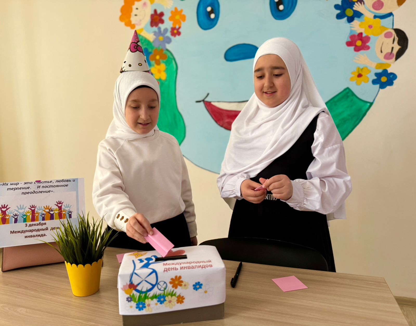 У нас в школе 3 декабря прошёл Международный день инвалидов. Основная задача этой даты- подчеркнуть важность инклюзивного общества, в котором люди с ОВЗ и инвалидностью имеют право на равные возможности и свободу выбора.Классный руководитель Тарамова Т.М в 8г классе провела акцию "Дерево добрых пожеланий" приуроченный к Международному Дню инвалида. Доброе пожелание- это не материальный подарок, это великий дар дарения. Учащиеся 8 г класса дарили не вещь, а силу и энергию, которая выражается мысленно через слов.