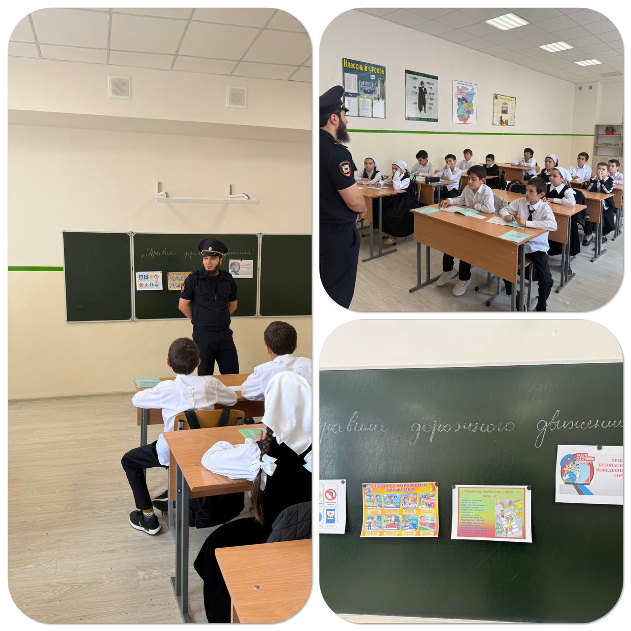 05.09.2025В период с 1 по 6 сентября 2025 года в МБОУ «Средняя школа №4 г.Ойсхара имени Рахима Хамзатовича Каимова» инспектор ПДН ОМВД по Гудермесскому району Музуруев Али Ханпашаевич провёл пешую экскурсию по безопасному маршруту «Дом-школа-дом» для учеников 4-5 классов. Целью мероприятия было закрепление навыков безопасного передвижения и формирование у малышей правильных привычек при переходе дороги и движении по маршруту.